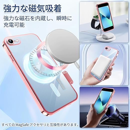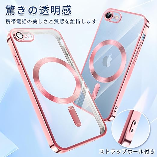iPhone SE 第2世代 第3世代 ケース MagSafe対応 クリア iPhone 8 7 ケース メッキ加工 アイフォン SE3 SE2 スマホケース 耐衝撃 TPU ワイヤレス充電対応 いpほね se3/se2/8/7 カバー ストラップホール付き 薄型 透明 超軽量 黄ばみにくい 柔軟 滑り止め (ローズゴールド) a