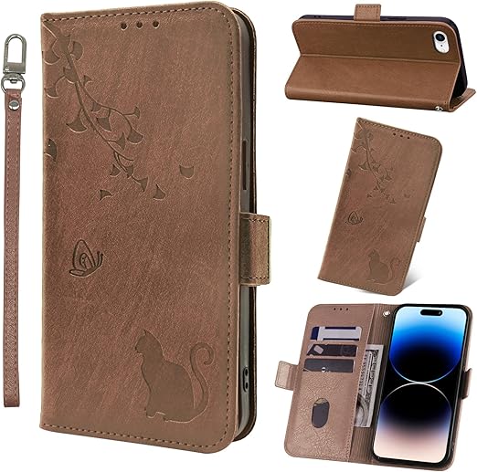 iPhone se 第3世代 ケース iPhone se2 ケース 手帳型 iPhone7 ケース iPhone 8 ケース 手帳型 iPhone se3 ケース 耐衝撃 アイフォンse 2/3 ケース 手帳型 アイホン7 ケース アイフォン8 ケース Jajaful iPhone 7/8/SE 2020/SE 2022 ケース スタンド機能 カード収納 PUレザー 軽量 猫 ブラウン a