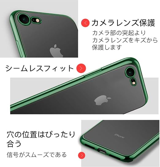 iPhone SE3 ケース iPhone SE ケース 第2世代 iPhone8 ケース iPhone7 ケース2022年新型 クリア 透明 tpu シリコン メッキ加工 スリム 薄型 4.7インチ スマホケース 耐衝撃 黄変防止 一体型 人気 携帯カバー ダークグリーン a