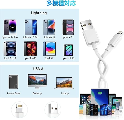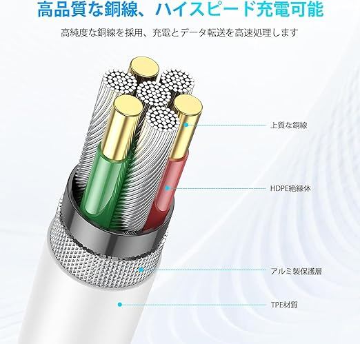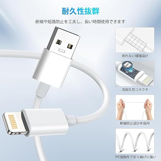 急速充電・データ輸送】iPhone 充電ケーブルは最大5V/2.4Aに急速充電可能です。採用された高品質な銅線は電気抵抗が低く、充電時間を短縮してくれ