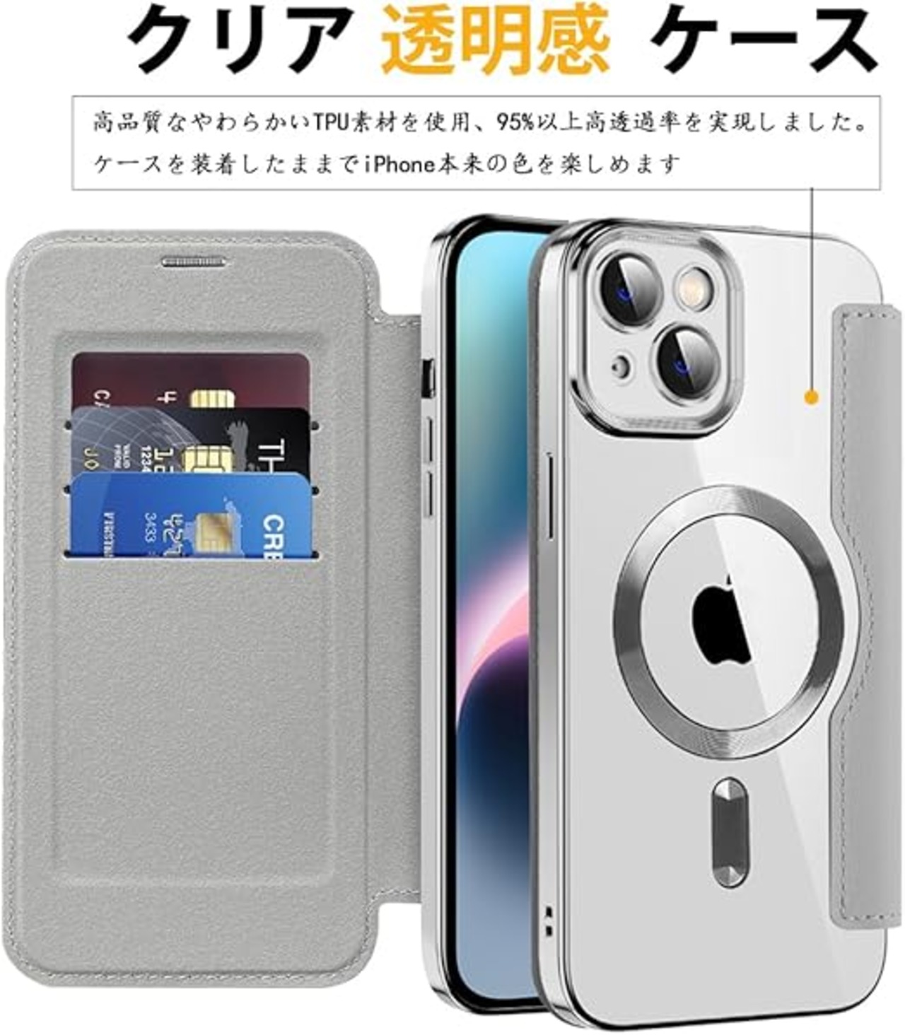 【背面クリア手帳型ケース】保護力が強いと同時に、ケースの全体が透明で、スマートフォン本来の美しさと高級感をそのままに楽しめます。