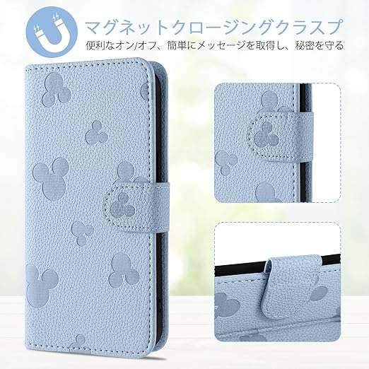 【Qribo】対応 iPhone14 ケース 手帳型 無地のかわいいクラシックなミッキーのアバター iPhone13 ケース 軽量 薄型 マグネット式 アイフォン14 アイフォン13ケース手帳型 カード収納 スタンド機能 あいふぉん14 カバー 衝撃吸収 活気のある雰囲気 いphone13 スマホケース 放熱性 折りたたみ いphone14 手帳型ケース 6.1インチ【ライトブルー】 a