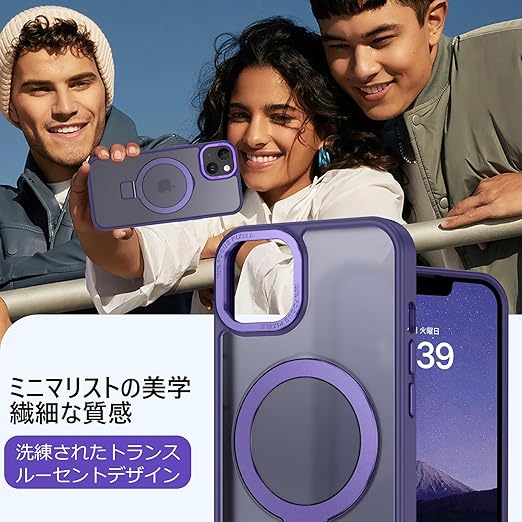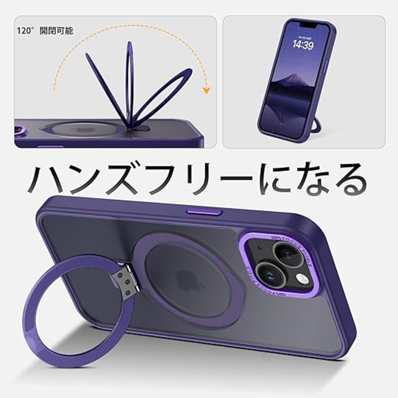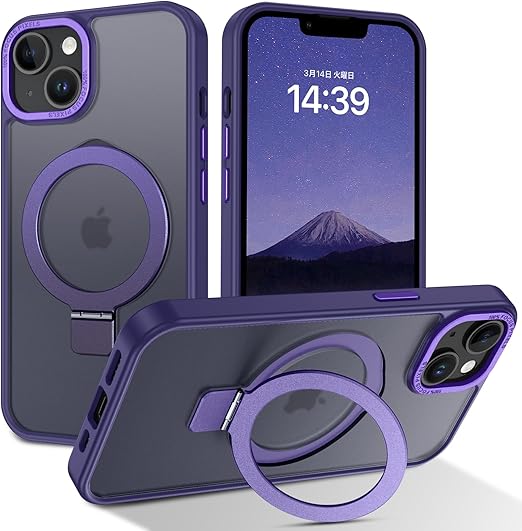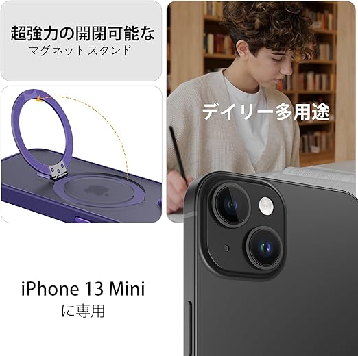 DUEDUE iPhone 13 Mini ケース MagSafe対応 アイフォン13mini ケース マグネット搭載 スタンド機能 120°開閉可能 ダークパープル 指紋防止 耐衝撃 一体型 薄型 車載ホルダー対応 ワイヤレス充電 全面保護 a