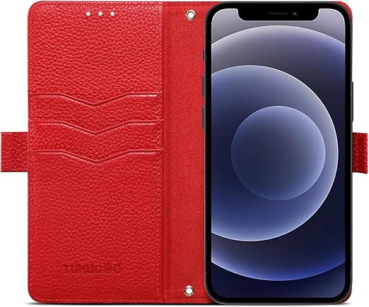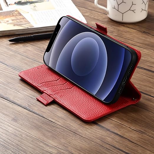 【 2023 新登場! 高級シュリンクカーフレザー】iPhone 13 mini ケース 手帳型 本革 牛革 カード収納 サイドマグネット式 横置きスタンド機能付き 上下にストラップホール付き ストラップ付 アイフォン 13 mini ケース 柔軟なTPU素材 耐衝撃 全面保護[Noble Series](iPhone 13 mini、レッド) a