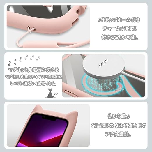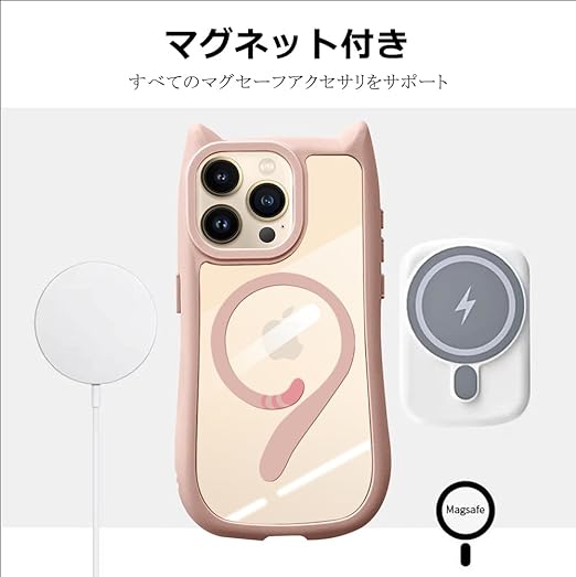 【ワイヤレス充電対応】ケースをつけたまま、Magsafeアクセサリを簡単に装着できるかわいい猫さんしっぽデザイン。本製品はワイヤレスチャージャーを使用しての充電に対応するよう設計されています。(※ 全ての環境で動作保証をするものではありません。)