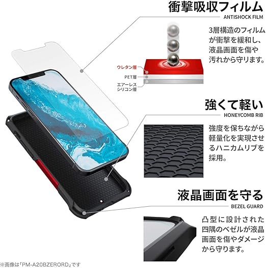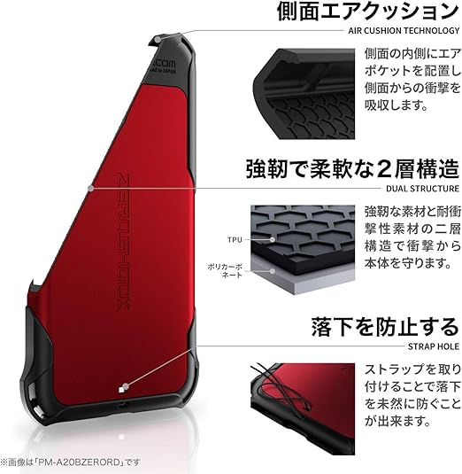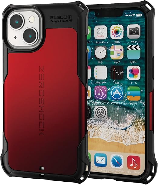 エレコム(ELECOM) iPhone 14 / 13 ケース カバー 耐衝撃 衝撃吸収 ZEROSHOCK [四つ角ダンパー/ハニカム構造/ダブルレイヤー構造] 【衝撃吸収フィルム付き】 ストラップホール付き レッド PM-A22AZERORD a
