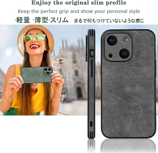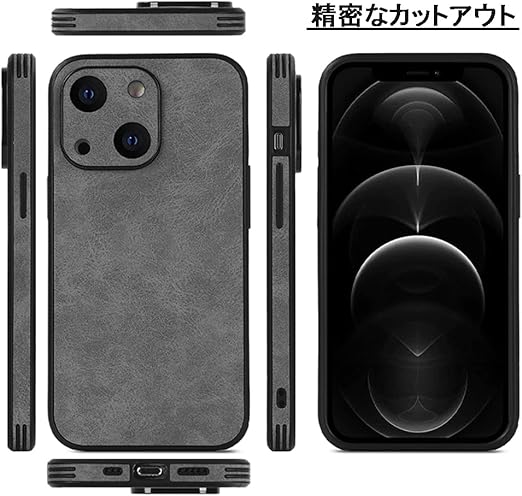JOOBOY iPhone 13 用 ケース 耐衝撃 薄型 コンパクト メンズ PC素材 + 背面 高級なPUレザー ハードカバー マット加工 (2024新款) 指紋防止 上質な手触り カメラ保護 アイフォン13 携帯カバー (ブラック, iPhone 13) a