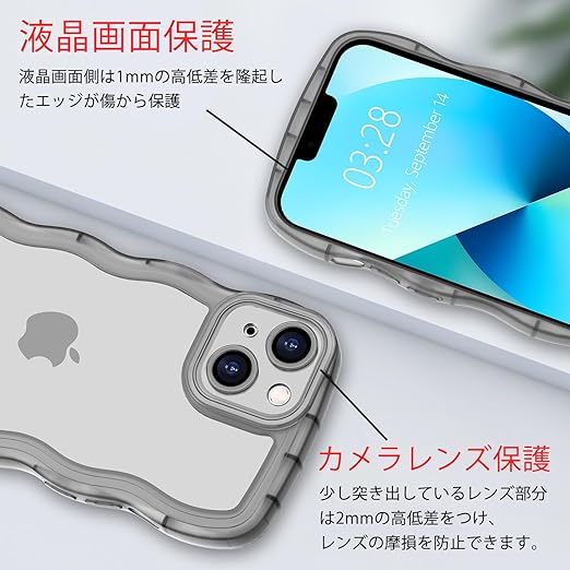 【かわいい波枠】これはiPhone 13 ケース用のクリアユニークな境界デザインで。かわいい波状の