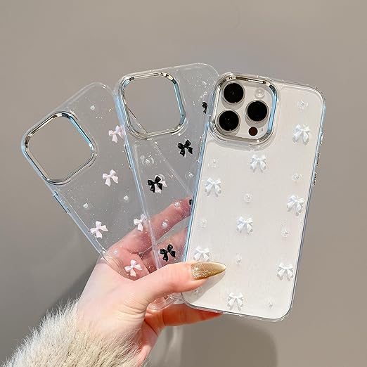 【3D ミニリボン デザイン 】背面はシルバーの小さなリボンと、埋め込まれている目を引くグリッターが剥がれ落ちたりしなく、可愛い、流行りの韓国デザインです!カメラ周りのシルバーフレームは、取り外し可能なデザインとなっております、お好みに合わせて、シルバーフレームの有無ご利用くださいませ。