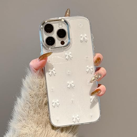 QLTYPRI iPhone13 Pro ケース クリア ホワイト ミニリボン おしゃれ 韓国 iPhone13 Proカバー 透明 可愛い 耐衝撃 スマホケース 立体 りぼん装飾 きらきら アイフォン13 Pro ケース、ホワイト a