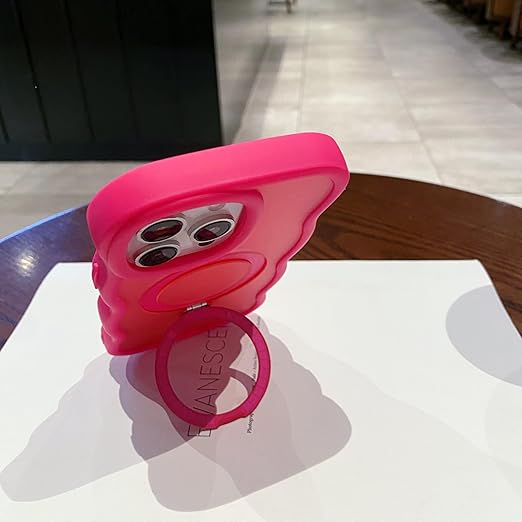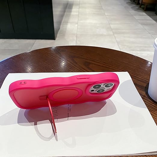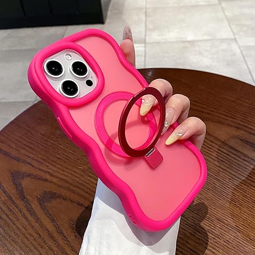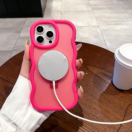 UEEBAI 対応 iPhone 13 Pro Max 用の ケース 半透明 TPU ウェーブデザイン スマホケース 可愛い 人気 おしゃれ ケース Magsafe対応 横縦両立 薄型 軽量 マグネット搭載 波型 バンパー スマホケース - ホットピンク a
