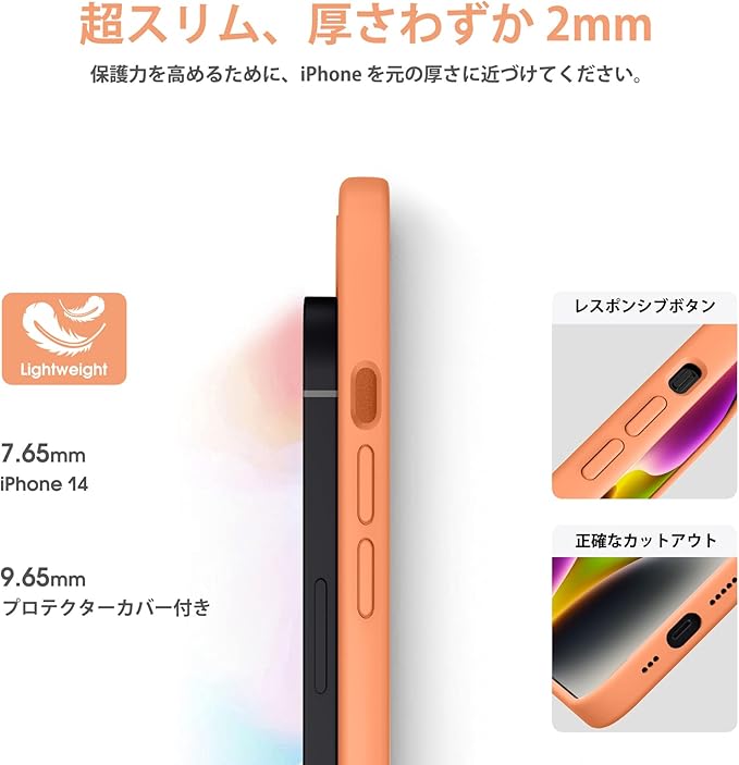 Supdeal iPhone 14 ケース 対応液体シリコン [耐衝撃] [柔軟TPU液体シリコン] [ソフトタッチ] [レンズの全面保護] [指紋防止] [落下防止] [滑り防止] 軽量 4層保護 アイフォン 14 スマホカバー 6.1インチ(オレンジ) a