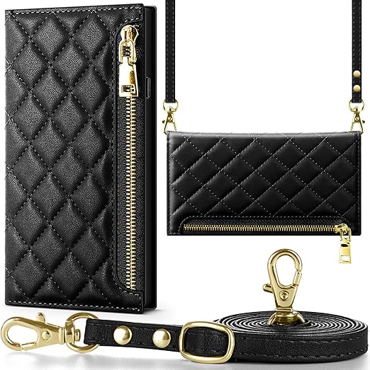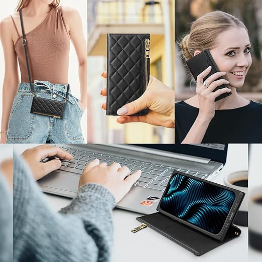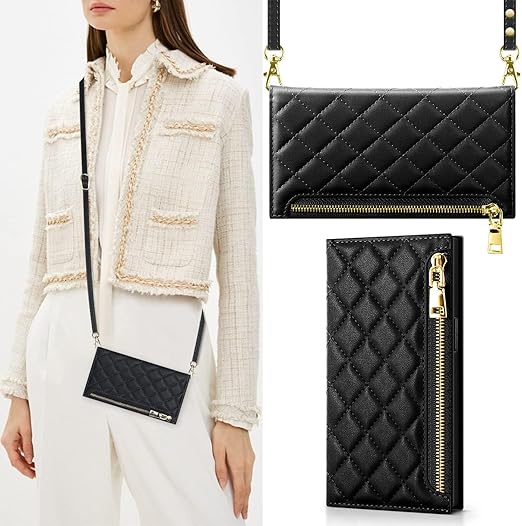 NODALA iPhone 14 ケース 手帳型 ショルダー付き 斜めがけ PUレザー 財布型カバー レディース用 おしゃれ 長さ調整可能 ロングストラップ カード収納 小銭入れ付き スタンド機能 耐衝撃 アイフォン14対応 ブラック a