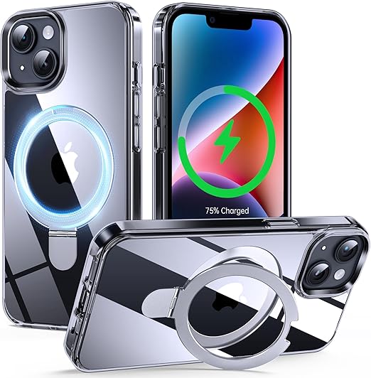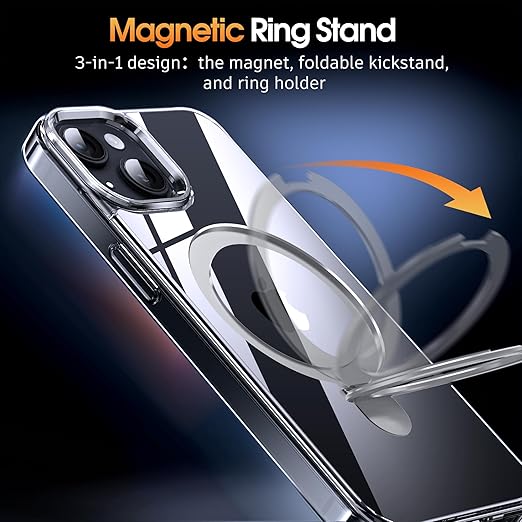 Supdeal iPhone 13/14 用 ケース magsafe対応 リングキックスタンド マット カバー スタンド 耐衝撃 米軍MIL規格 滑り止め 指紋防止 黄?防止 ワイヤレス充電 アイフォン 13/14 携帯電話のケース 6.1インチ (クリア) a