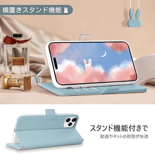 iPhone 14 pro ケース 手帳型 可愛いウサギ iPhone14 pro 手帳型ケース 人気 どうぶつ iPhone 14 プロ ケース 手帳型 アイフォン 14 pro ケース カード収納 横置き機能スマホケース iPhone 14 pro 手帳型 スタンド機能付き あいほん14 pro 財布型 かわいいの動物 アイフォン14プロ ケース男女兼用 贈り物 落ち着いた色,ライトブルー a