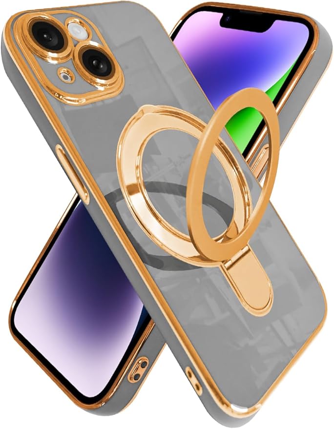シズカウィルRe iPhone 14 ケース MagSafe対応 リング スタンド レンズ保護 カバー ワイヤレス充電 耐衝撃 ハイブリッド8 スマホケース 1個入り グレー a