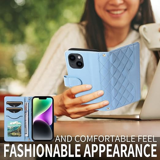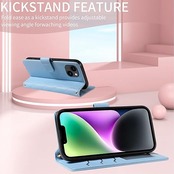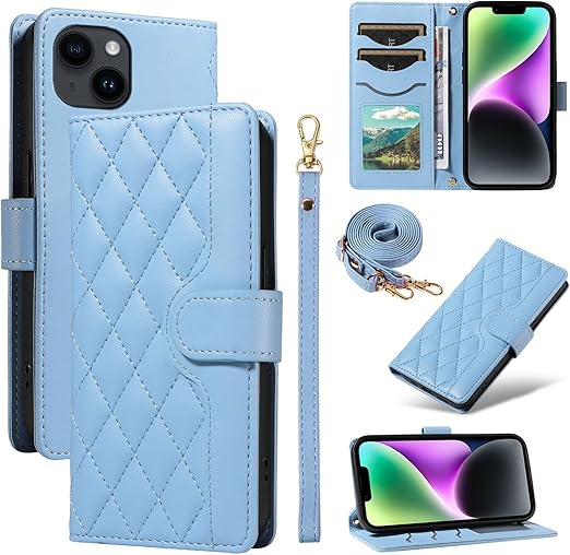 For iPhone 14/13 ケース 手帳型 いphone14 ケース ショルダー 対応 iPhone 14 スマホケース アイフォン13カバー手帳型 財布型 カード収納 横置き機能 耐衝撃 携帯カバー ストラップ付き(あお) a