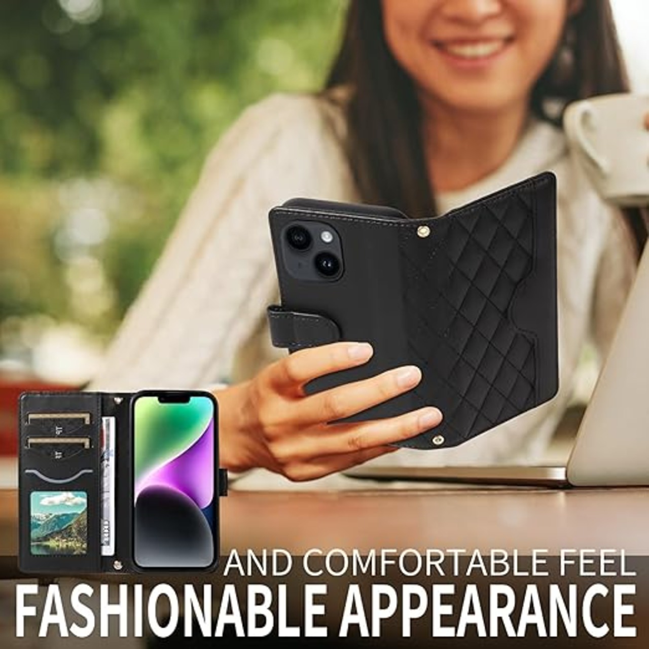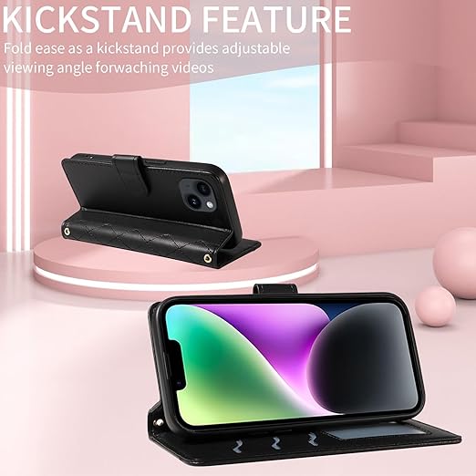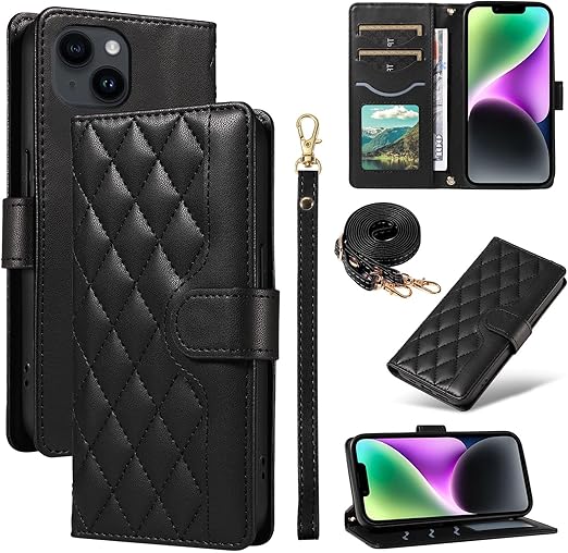 For iPhone 14/13 ケース 手帳型 いphone14 ケース ショルダー 対応 iPhone 14 スマホケース アイフォン13カバー手帳型 財布型 カード収納 横置き機能 耐衝撃 携帯カバー ストラップ付き(ブラック) a