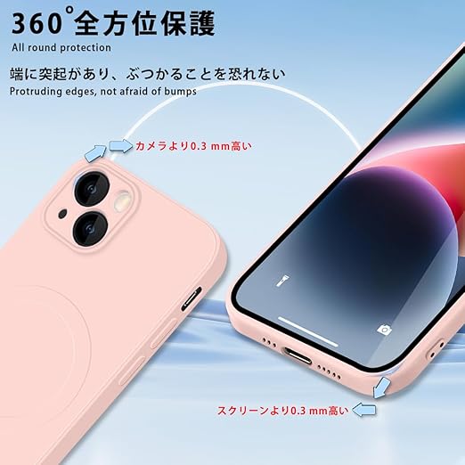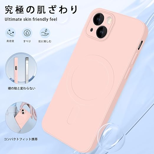 ZHUAZHULE iPhone14 ケース MagSafe対応 シリコン アイフォン14 スマホケース カバー 耐衝撃 レンズ保護 マグネット搭載 車載ホルダー ワイヤレス充電対応 ストラップホール付き オシャレ 指紋防止 薄型 (ピンク) a