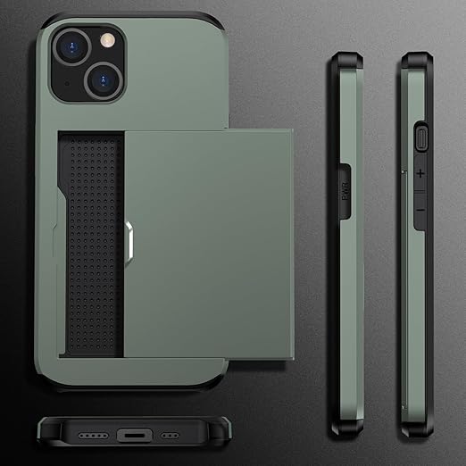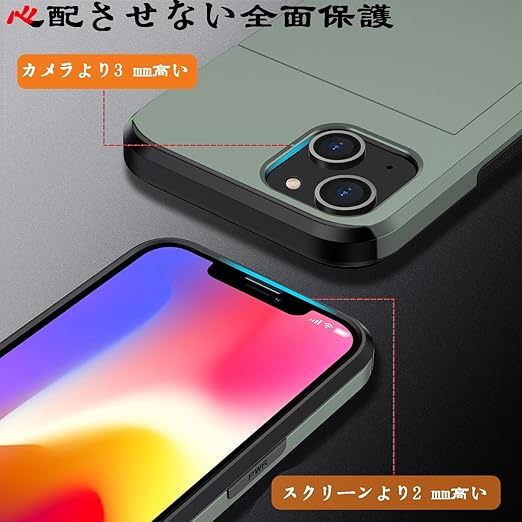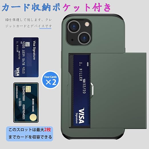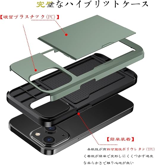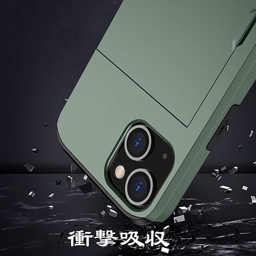 MuZiF iPhone 14 用 ケース カード収納 耐衝撃構造 米軍耐衝撃 全面保護 擦り傷防止 PC 背面収納 アイフォン14 用 カバー ケース(iPhone 14,グリーン) a