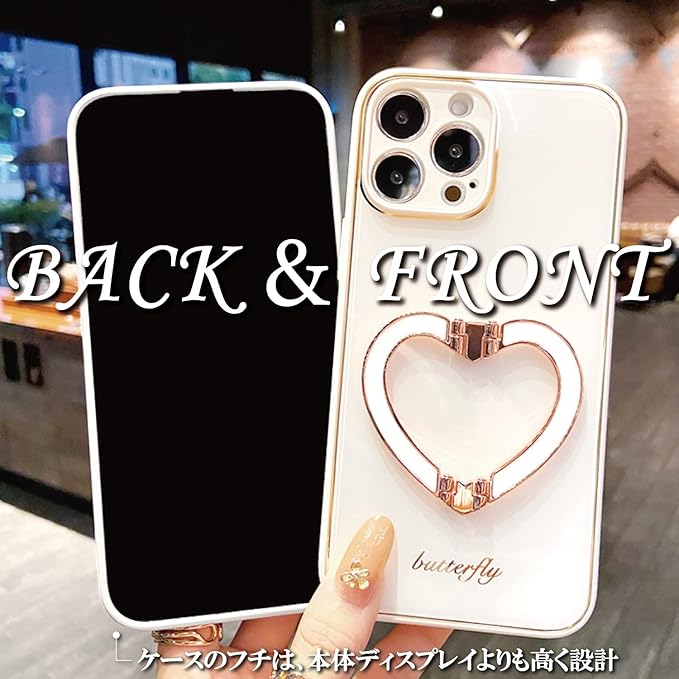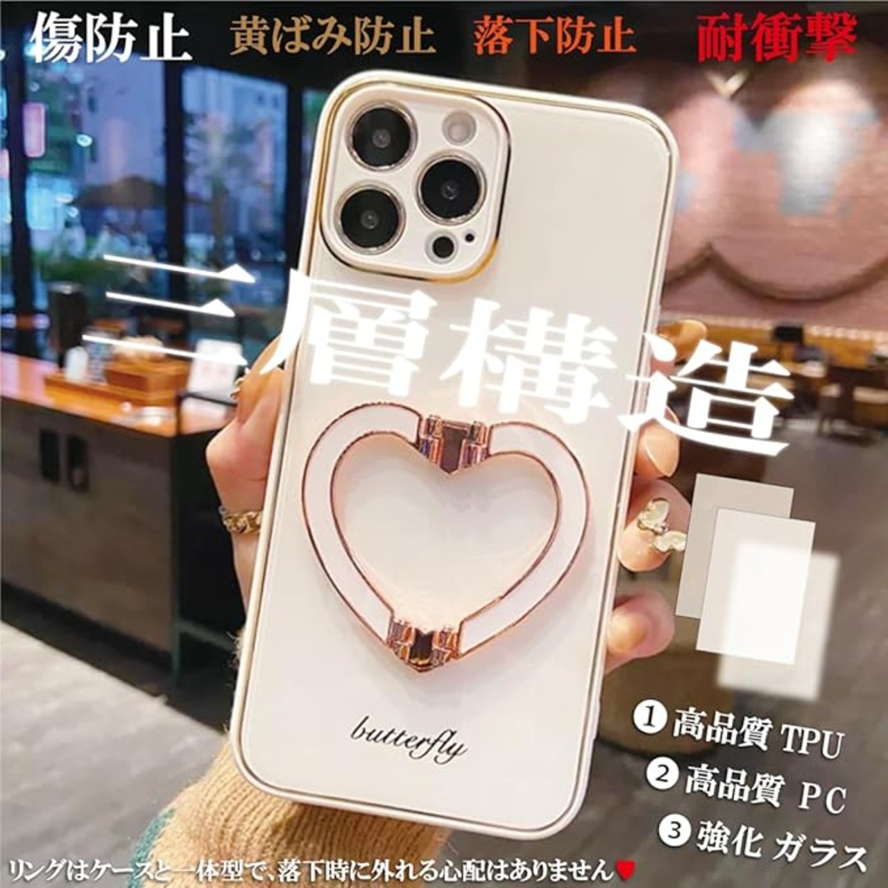 ハート リング付き ケース いPhone 14 Pro 対応 白 おしゃれ 韓国 大人 可愛い リング スマホ 14 プロ 用 a