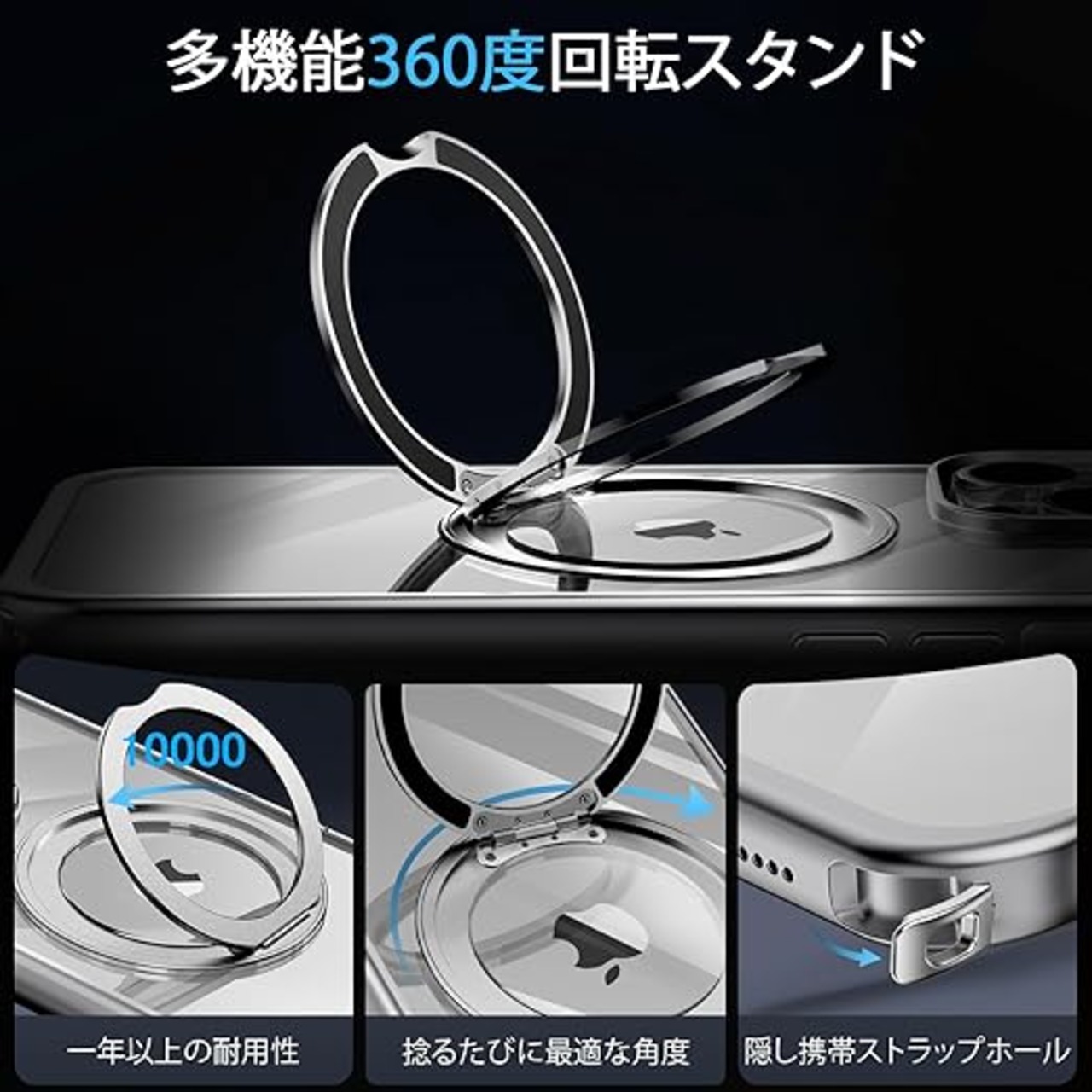 【隠れたスマホストラップ穴】新しいデザインでは、必要ないときにストラップ穴を隠せる機能が追加されました。付属の調節可能なショルダーストラップにより、サイドやフロントで持ち運ぶ際にスマートに身に着けることができます。紛失や落下