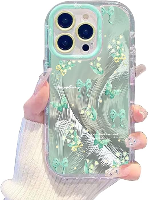 KeKeYou iPhone 14 Plus 用 ケース 可愛い ちょう かわいい 韓国 ケース 薄くて軽い 人気 おしゃれ 蝶と スマホケース 耐衝撃 携帯カバー レンズ保護 携帯ケース アイフォン14 Plus 用 スマホカバー (iPhone 14 Plus用,グリーン) a