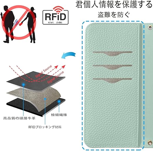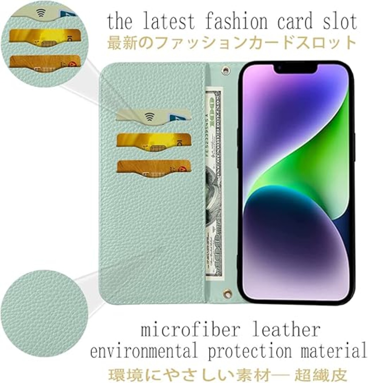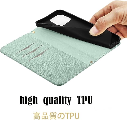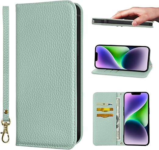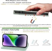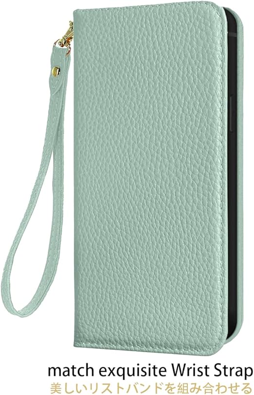 NanHou iPhone 14 Plus ケース 手帳型 超繊皮カバー 手帳型 耐衝撃 保護カバー 内蔵マグネット RFIDト 財布型 携帯カバー カードポケット スタンド機能 リストバンド - ライトグリーン a