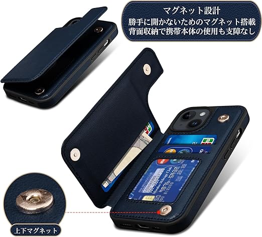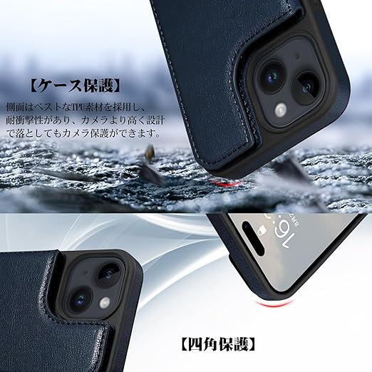 iPhone 15 用 ケース 背面 手帳型 カード iPhone15 用 背面ケース 手帳型ケース スマホケース ICカード収納 Shlybaay 軽量 アイフォン15 用 ケース カバー アイホン 15 用 手帳型ケース 磁石吸着 背面 カード収納 プレゼント おしゃれ ファッション 耐衝撃 便利 多機能 落下保護 写真入り 6.1inch対応 T1 ブルー a