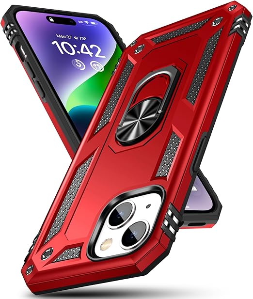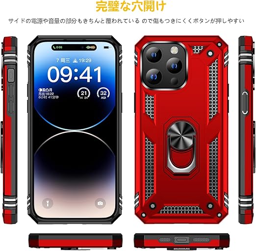 iPhone 15 用 ケース リング付き 耐衝撃 TPU 車載対応ホルダー対応 スマホケース PC スタンド機能 薄型 軽量 アイフォン15 用 カバー カメラ保護 衝撃吸収 指紋防止 黄変防止 一体型 四隅滑り止め 手触り良い 全面保護カバー 赤 SJ16.72 a