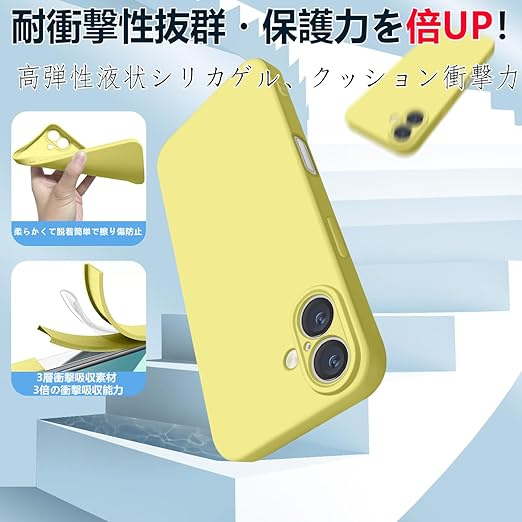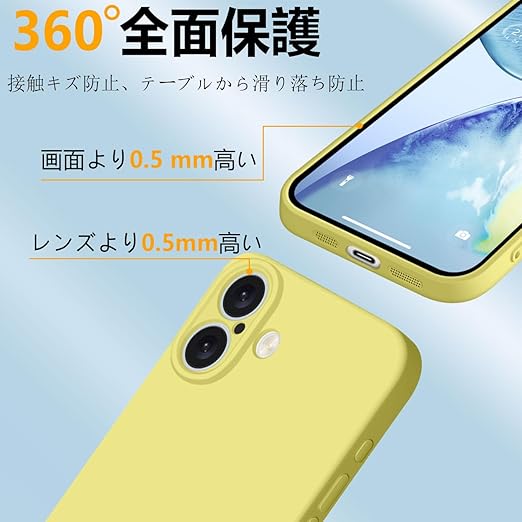 iPhone 16 用 ケース シリコン 耐衝撃 アイフォン 16 カバー さらさら手触り 傷付き防止 超軽量 マット質感 指紋防止 レンズ保護 ワイヤレス充電 (イエロー) a