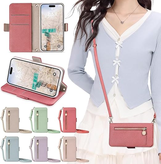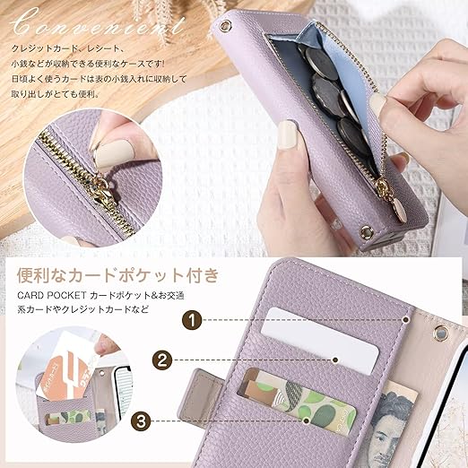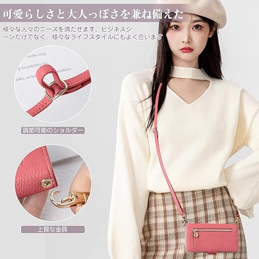 多機能なお財布・ショルダーストラップ付きスマホケース 長さを調節可能なショルダーストラップ付き、肩掛け、斜め掛けができます。スマホをうっかり紛失してしまうリスクを減らせます。お財布付きのポーチ型デザインは、日常生活や日帰り