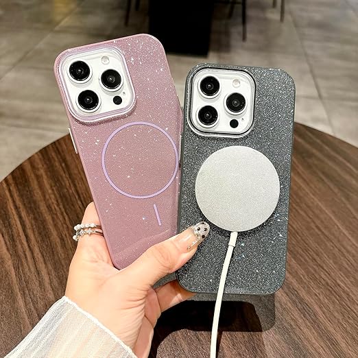 Sakanana iPhone 15 用 ケース キラキラ ラメ Magsafe対応 おしゃれグリッター 可愛い TPU+PC シンプル マグネット搭載 ワイヤレス充電対応 耐衝撃 黄ばみなし 軽量 薄型 ストラップホール付き(iPhone15,パープル) a