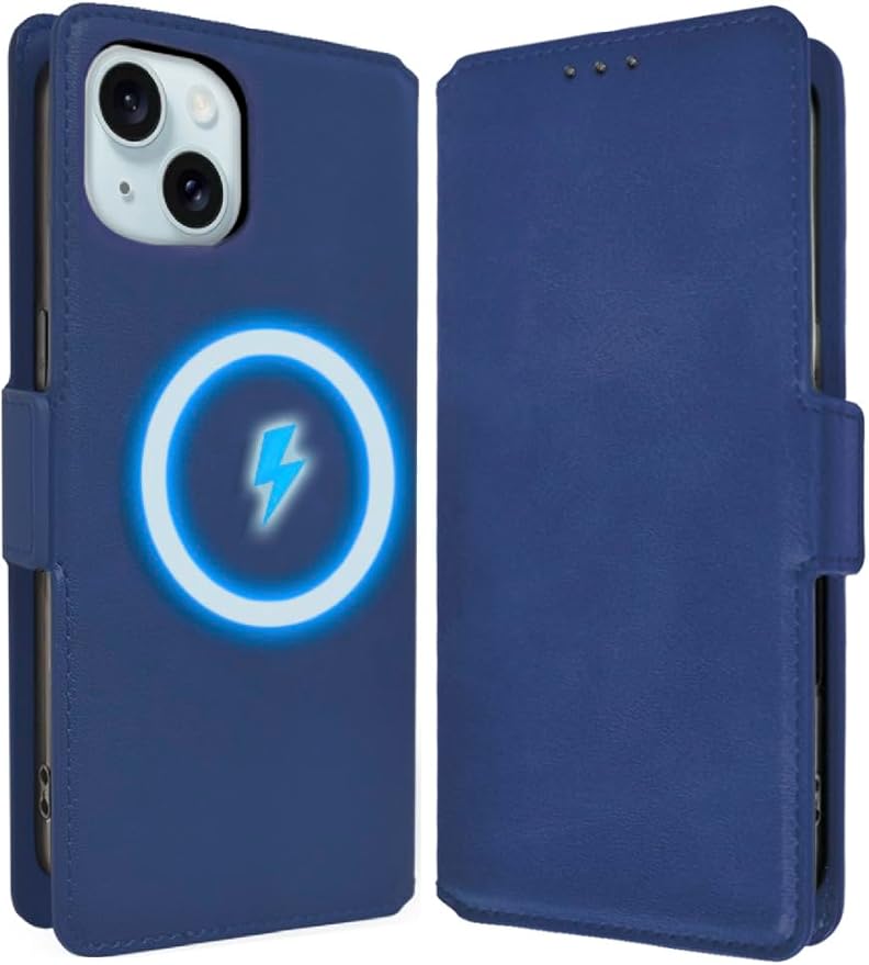 シズカウィルRe iPhone 15 ケース MagSafe対応 手帳型 カバー 本革調 スマホケース レザーケース 1個入り ブルー a