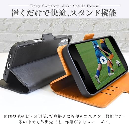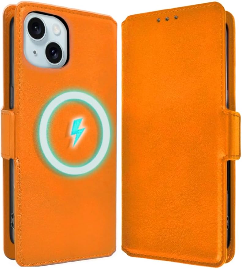 シズカウィルRe iPhone 15 ケース MagSafe対応 手帳型 カバー 本革調 スマホケース レザーケース 1個入り オレンジ a