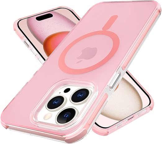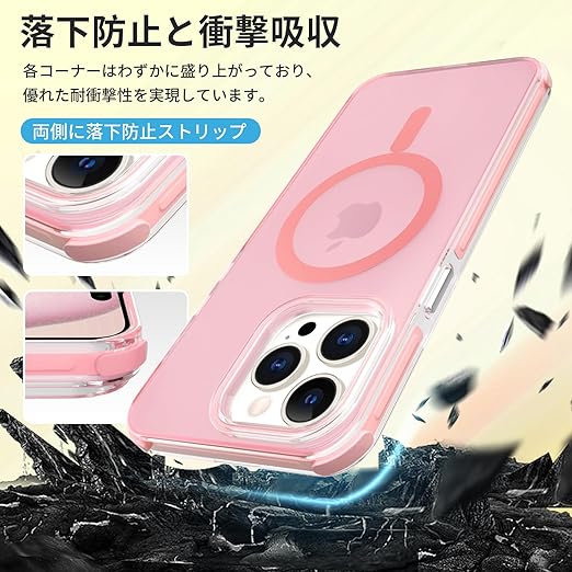 MIIFUBOO iPhone 15 Pro MagSafe対応 ケース 耐衝撃 TPU 半透明 【カラフルキャンディシリーズ】 アイフォン 15 Pro スマホケース 米軍MIL規格 衝撃吸収 滑り止 指紋防止 擦り傷防止 ワイヤレス充電対応 いphone15Pro カバー マット質感 落下保護 耐黄変 軽量 ファッション,モモ(ピンク) a