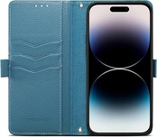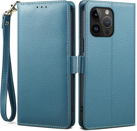 【 2023 新登場! 高級シュリンクカーフレザー】iPhone 15 Pro Max ケース 手帳型 本革 牛革 カード収納 サイドマグネット式 横置きスタンド機能付き 上下にストラップホール付き ストラップ付 アイフォン 15 Pro Max ケース 柔軟なTPU素材 耐衝撃 全面保護[Noble Series](iPhone 15 Pro Max、シアン) a