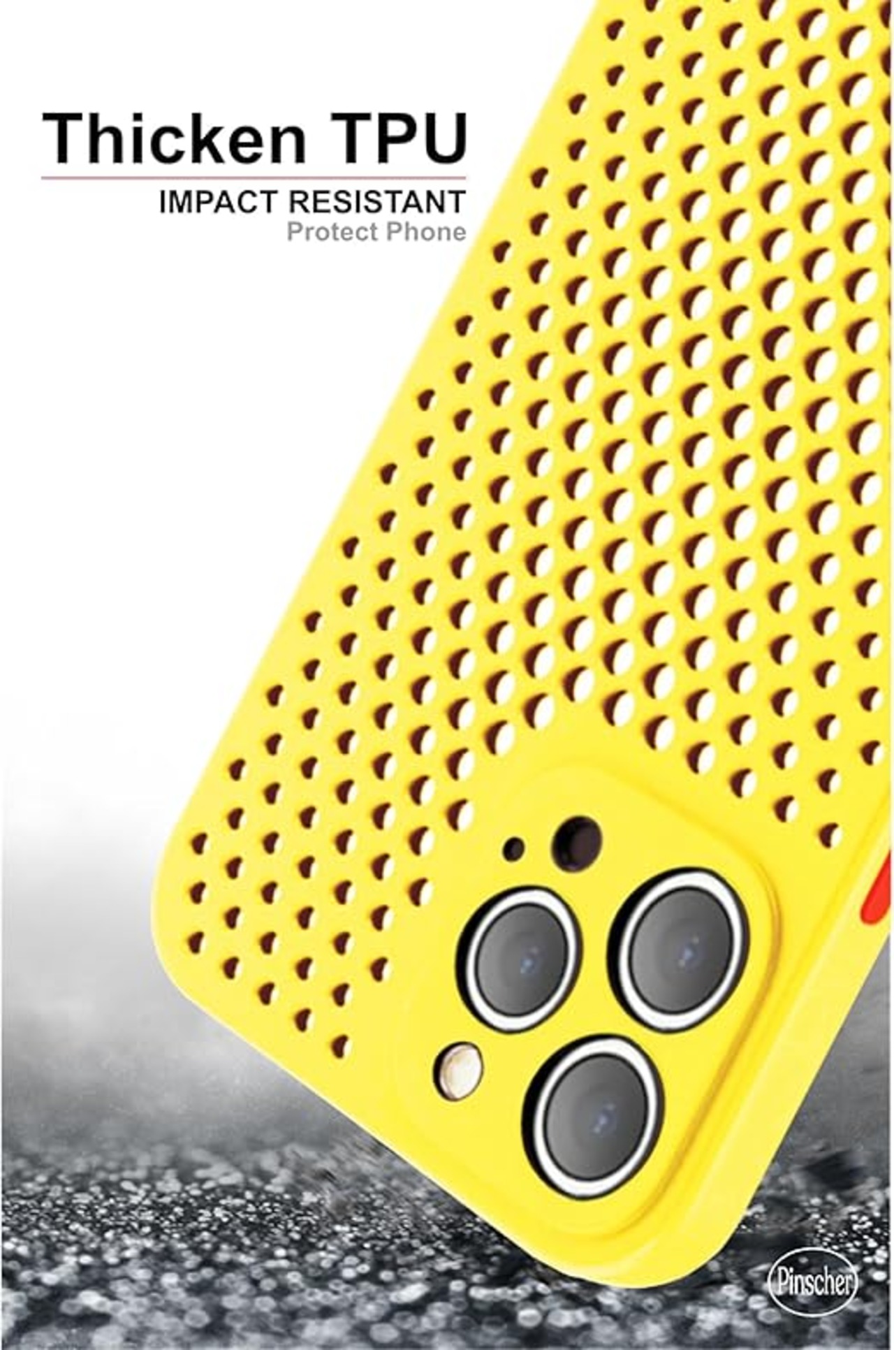【Pinscher(ピンシャー)】 iPhone15 Pro (イエロー) 6.1インチ メッシュ ケース 放熱 アイフォン15 プロ ケース スマホケース カバー バンパー TPU Qi充電 耐衝撃 擦り傷防止 滑り止め 軽量 薄型 pc002-15p-y a