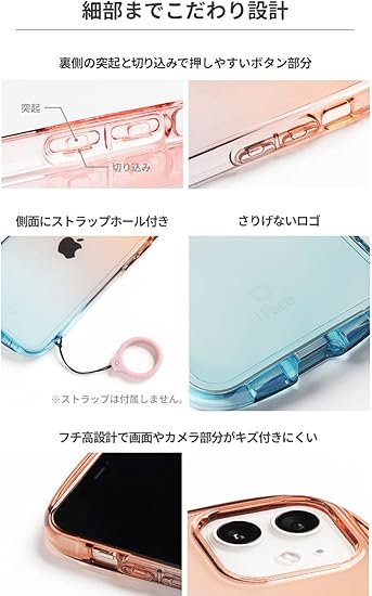 キャンディみたいなポップなカラーで、グラデーションが印象的なiFace Look in Clear Lolly(ロリー)。フチの透け感が可愛いので、淡い色の機器はもちろん、濃い色の機器でも楽しめます。