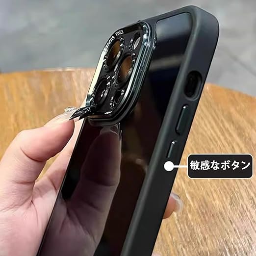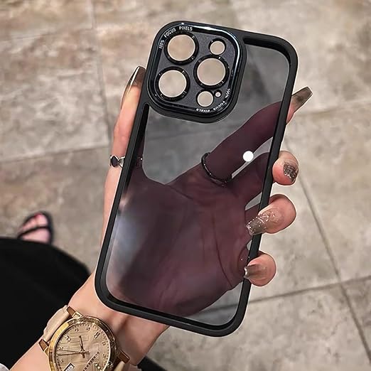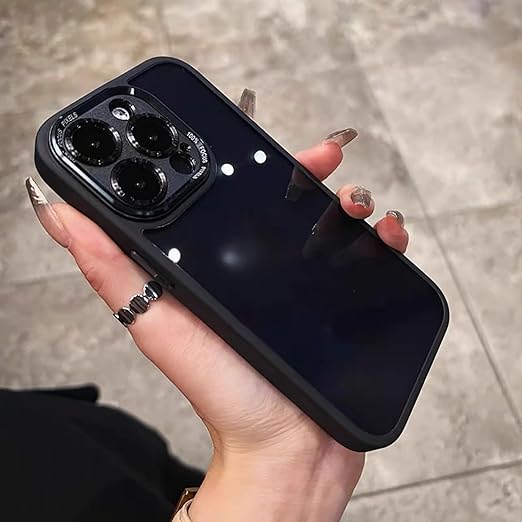 iyite iPhone 15 Pro Max ケース、一体型カメラレンズ保護機能付き、[ミルグレード耐衝撃防御] 透明バックプレーン保護ケース、iPhone 15 Pro Max 用、ブラック a