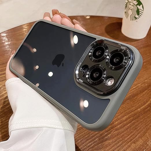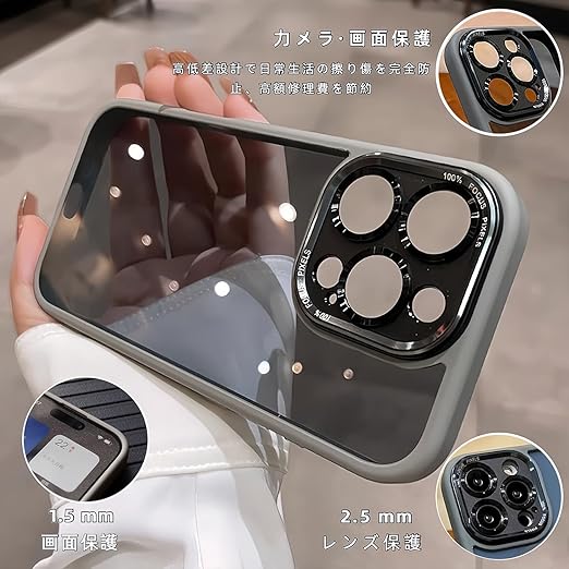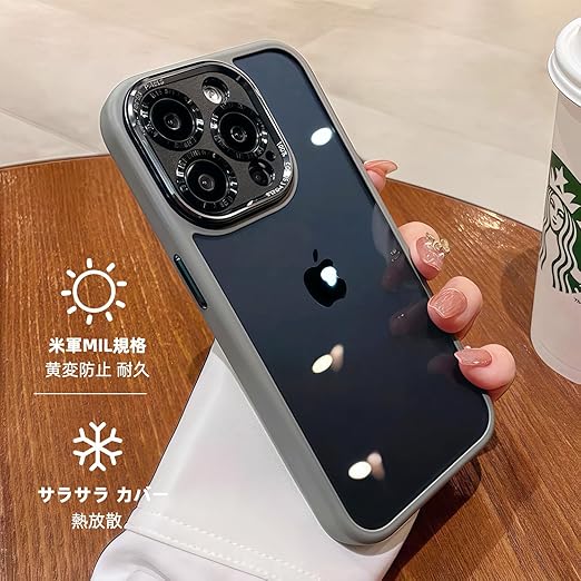 iyite iPhone 15 Pro Max ケース、一体型カメラレンズ保護機能付き、[ミルグレード耐衝撃防御] 透明バックプレーン保護ケース、iPhone 15 Pro Max 用、マットグレー a