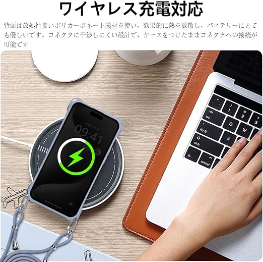 iPhone15 Pro Max ケース ショルダー シリコン iphone 15 Pro Max スマホケース アイフォン15Pro Max カバー 耐衝撃 肩掛け 斜めかけ 縄掛けケース 紐付き 斜めがけ 織りストラップ付き 長さ調整可能 取り外し可能 傷付き防止 マット質感 指紋防止(グレーブルー) a
