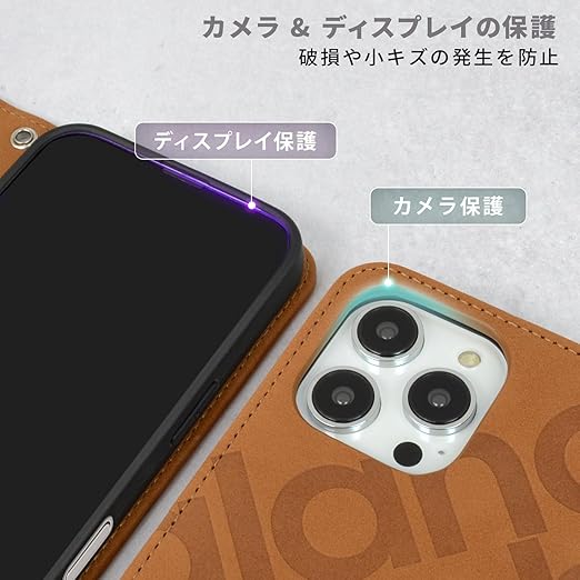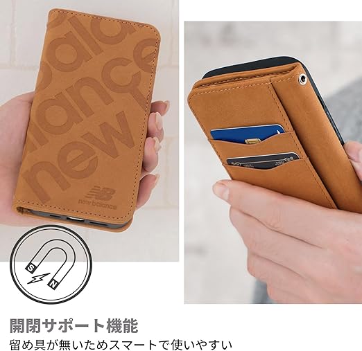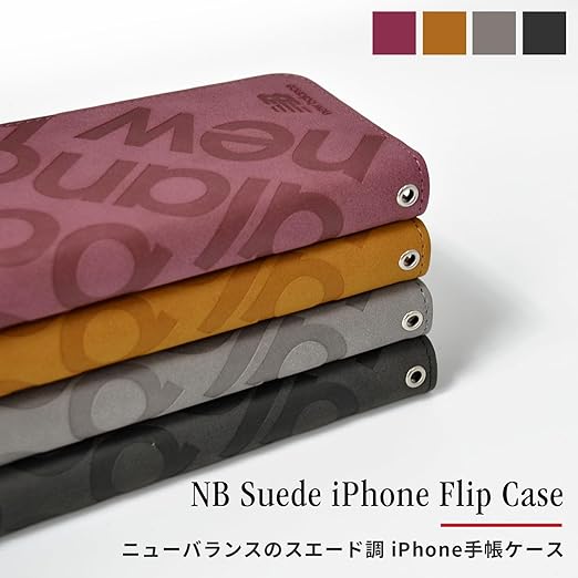 【 New Balance正規品 】 iPhone 16 Pro Max ケース 手帳型 6.9インチ カード収納 ブランドロゴ おしゃれ「スタンプロゴスエード調」 ニューバランス アイフォン16プロマックス iPhone 16ProMax 用 型押し スマホケース (キャメル, iPhone 16 Pro Max) a