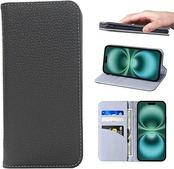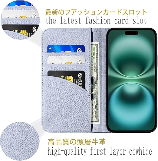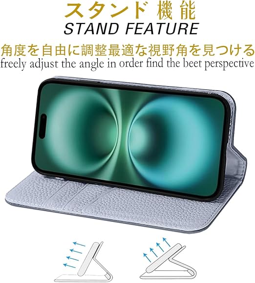 NanHou iPhone 16 Plus ケース 本革 手帳型 カバー 耐衝撃 保護 カバー 本革 内蔵マグネッ RFIDト 財布型 携帯カバー カードポケット スタンド機能 - ダークグレ/ライトグレー a