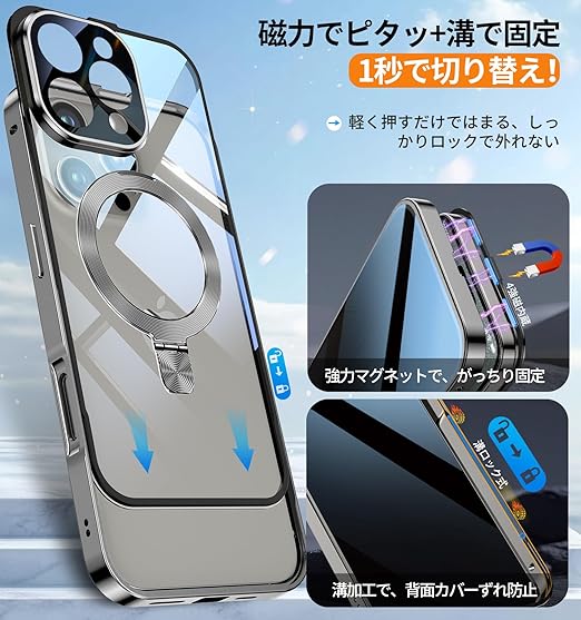 【新発売磁気×溝 Wロック・魔法みたい!】当社の最新 iPhone 16 カバーは、磁石が自動的に位置誘導し、溝ロックが「カチッ」と固定するダブルメカニズムを搭載。従来品を圧倒する磁気ガイド&スロットロック機構で、業界最速の装着を実現!驚異の1秒ロックを実現し、カードを差し込むような感覚で簡単に設置可能です。装着時は背板を挿入して軽く押すだけ、取り外す時も引くだけで完了。これにより、「固くて開かない」「衝撃で外れる」「背板の浮き上がり」といった従来のあらゆる課題を完全解決しました。このiphon