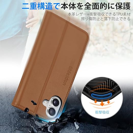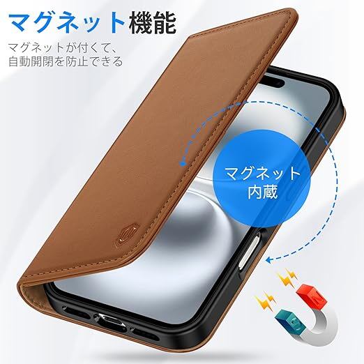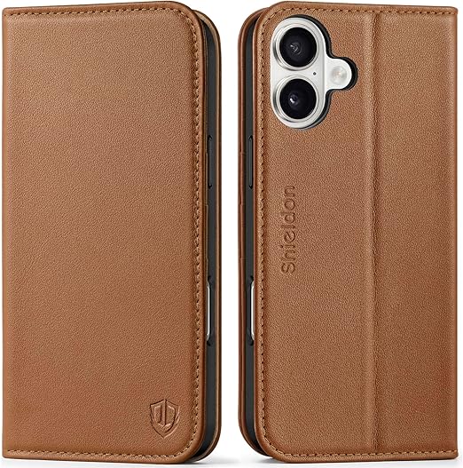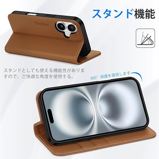 SHIELDON iPhone 16 Plus 対応ケース 手帳型 本革 あいふぉん 16プラス スマホカバー カード収納 横置きスタンド機能 マグネット内蔵 TPU素材 衝撃吸収 [RFIDブロッキング] 全面保護 アイホン16 Plus 対応 スマホケース 2024年発売 6.7インチ対応 5G サドルブラウン a