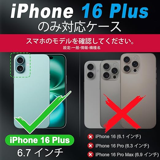 【対応機種・型番確認】iPhone16Plus(6.7インチ、2024年発売)のみに対応しておりますが、他の型番が併用できません。注文する際に間違いないようご確認頂ければ幸いです。万が一商品に初期不良・破損などがある場合、注文履歴画面より出品者にご連絡お願い致します。