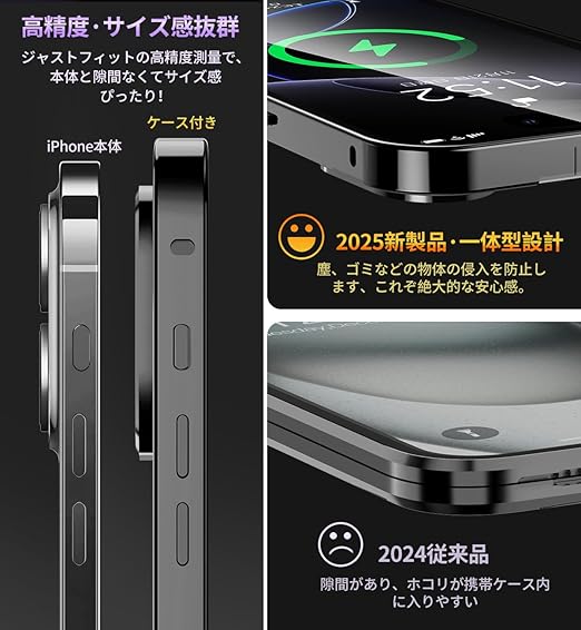 【ロック機能付き・1秒で取り付け・一体型レンズ保護付き】革新的な技術、このiPhone16 両面ケースは上部にスライドボタン式のロックがあり、前後のケースをしっかり固定します。上部のボタンを押すだけで、ロックの解除も簡単、取り付けで開く非常に便利です。こちらのあいふぉん16ケースであなたの大切なスマホを守ってあげてください!このiPhone16 ケースのバンパーとレンズ保護フィルムが一体型になっており、背面カメラ周りを覆い、カメラへの傷を防ぐ、カメラレンズ保護設計です。レンズの保護フィルムの必要