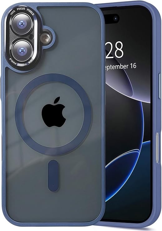 Tecxin iPhone 16 対応 磁気互換ケース、アップグレード版 [カメラ保護] [MagSafe 対応] [透明マット仕上げ] 耐衝撃保護ケース 6.1インチ - ディープブルー a