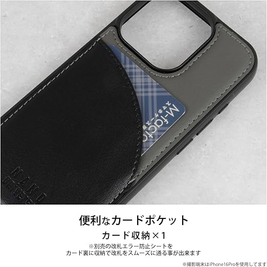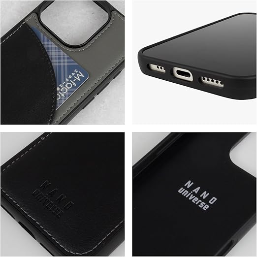 【 nano・universe 正規品 】 iPhone 16 Pro ケース 背面「 カードポケット付き背面ケース/バイカラー 」ナノユニバース アイフォン16プロ iPhone16Pro 用 カード収納付き ブランド スマホケース カバー (ブラック, iPhone 16 Pro) a